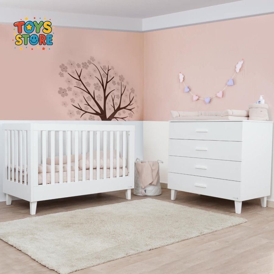 سرير مُصمم خصيصاً لمراحل نمو الطفل. قاعدة السرير قابلة للتعديل إلى وضعي ارتفاع: وضع المهد ووضع سرير الطفل.