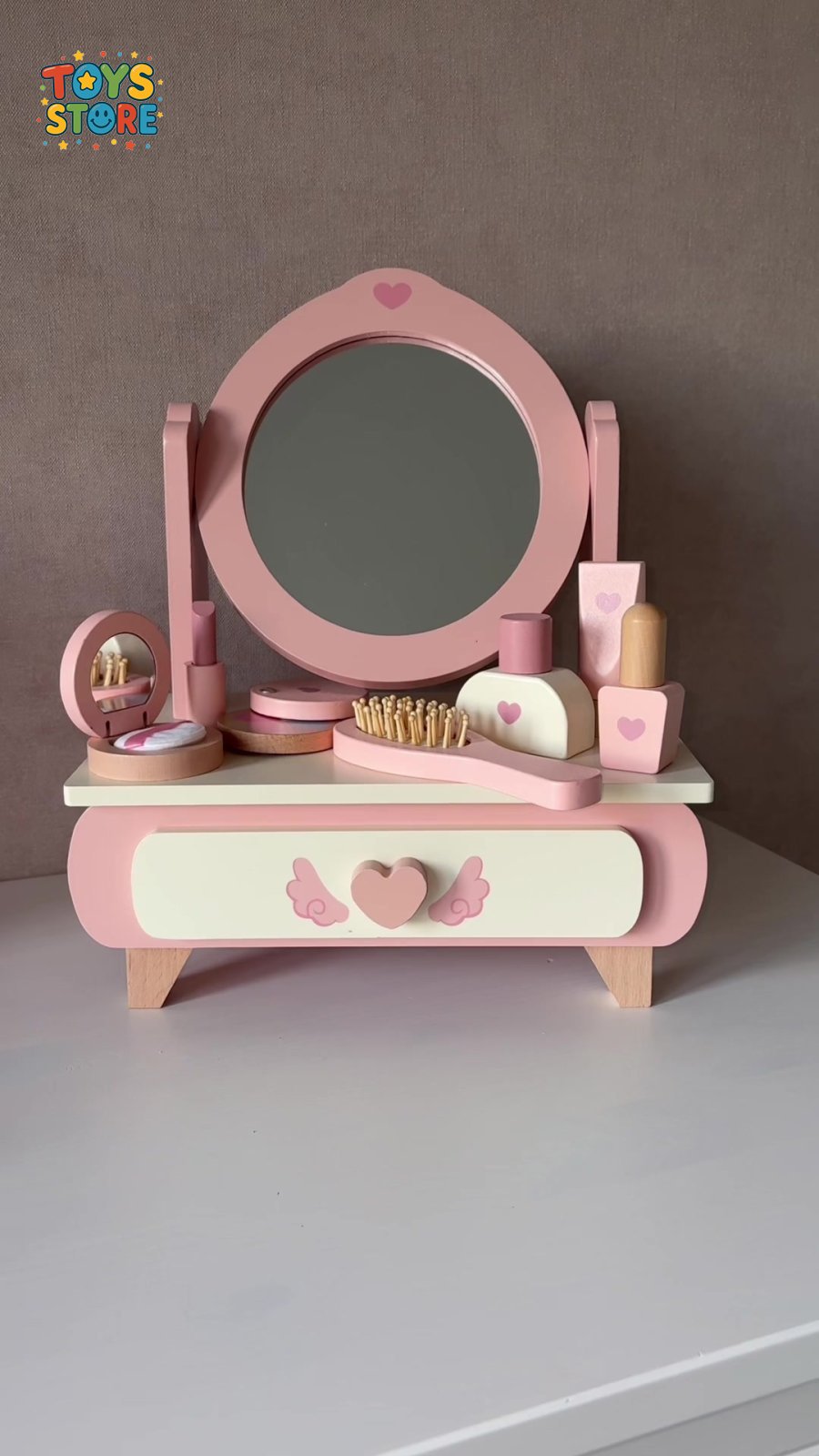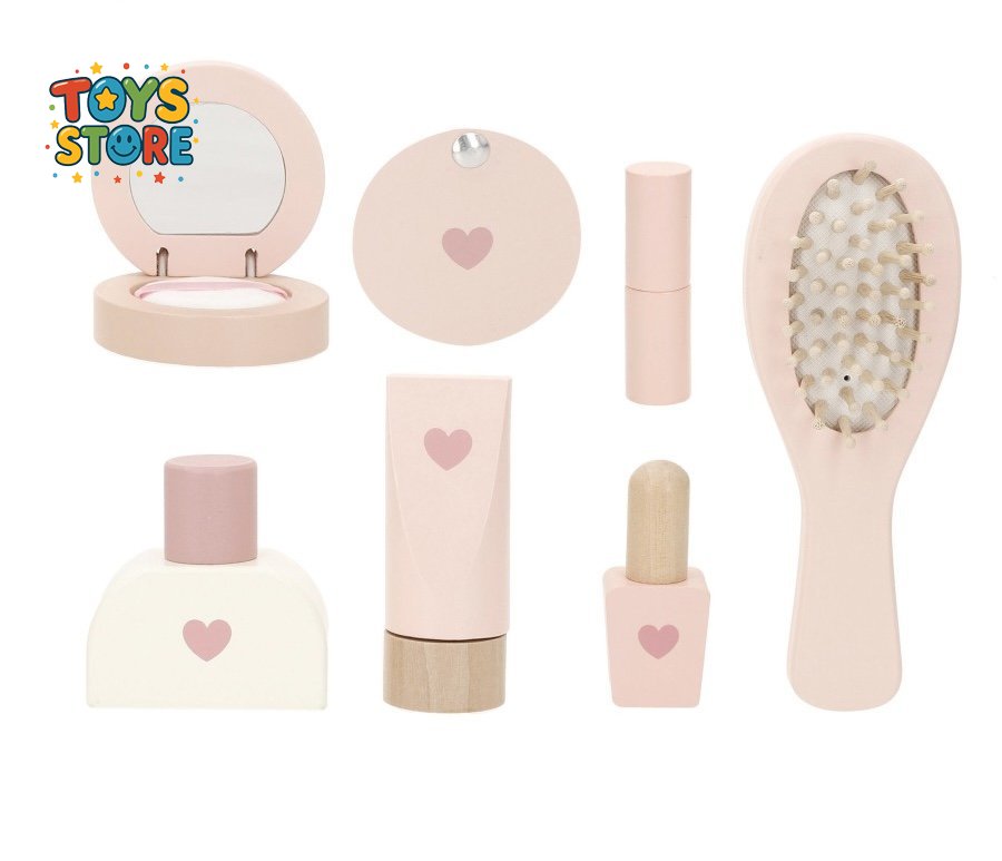 تحتوي : مشط، مرآة محمولة، 2 أحمر شفاه، 2 زجاجة مستحضرات تجميل و2 لوحة مكياج