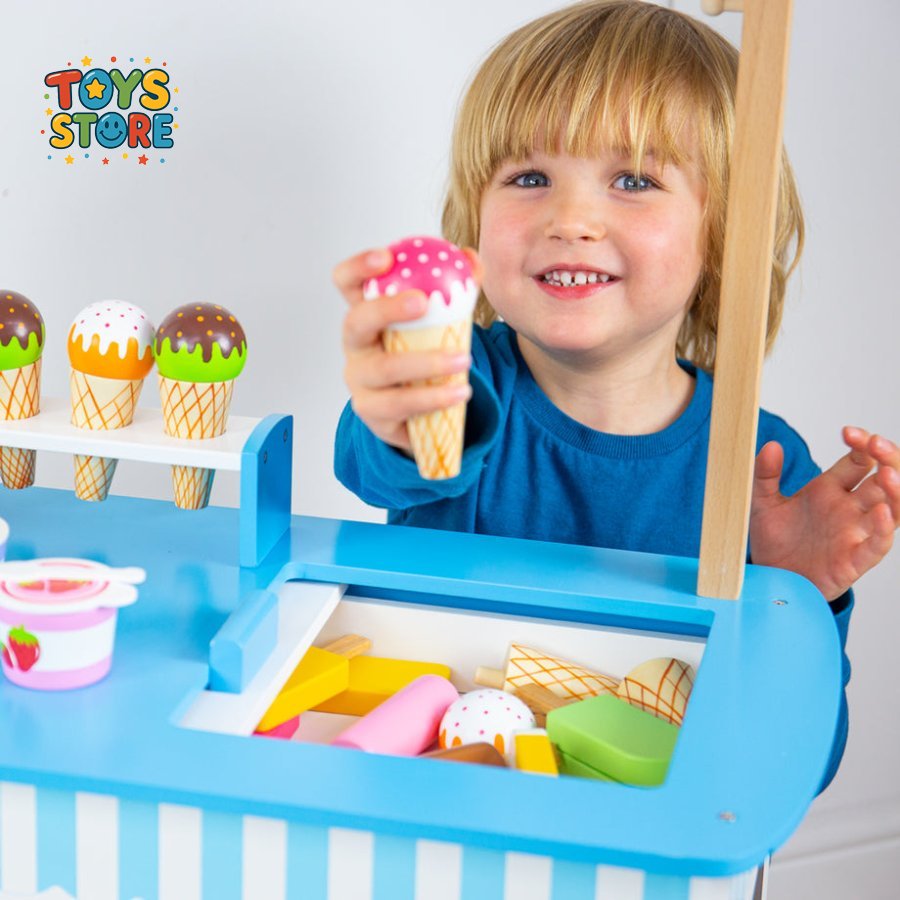 عربة الآيس كريم مع 6 آيس كريم، و9 مصاصات آيس كريم، و2 وعاء آيس كريم مع ملاعق، ومغرفة آيس كريم