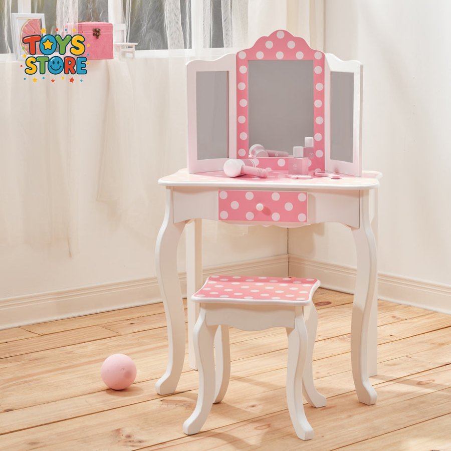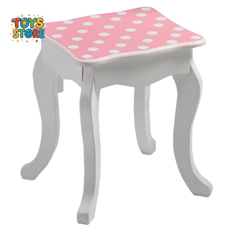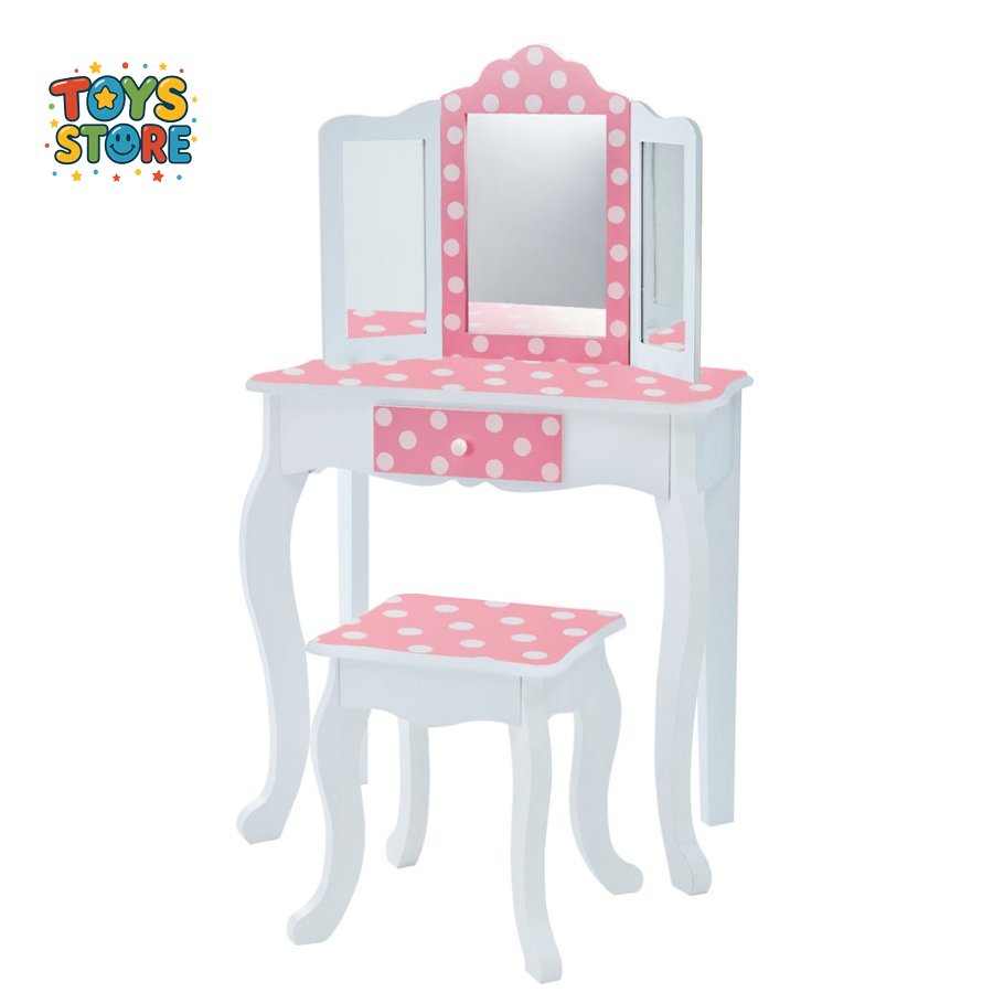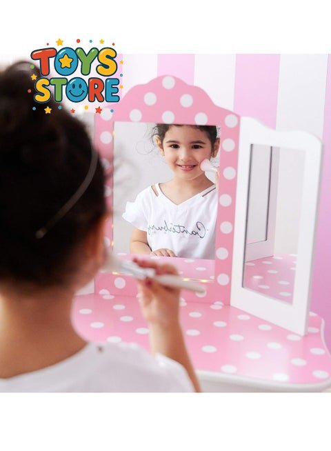 طقم طاولة لعب بتصميم الأميرة الصغيرة جيزيل من تيمسون كيدز، قطعتان، بنقشة منقطة، مع مرآة ثلاثية الطي ومقعد، وردي/أبيض