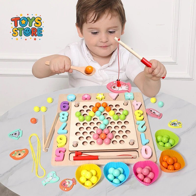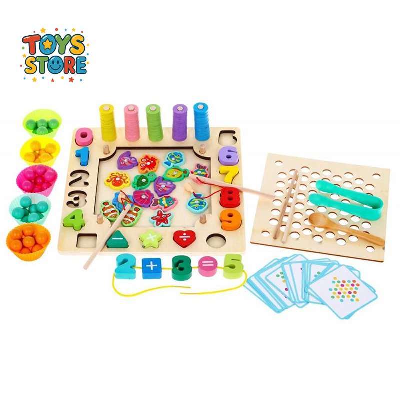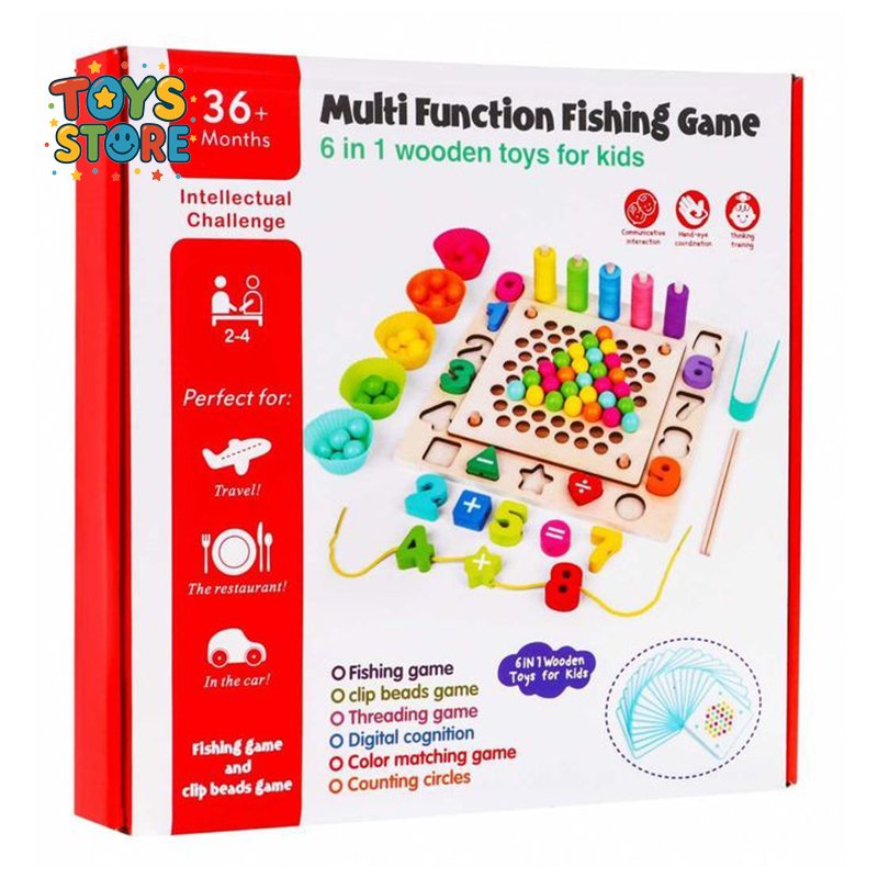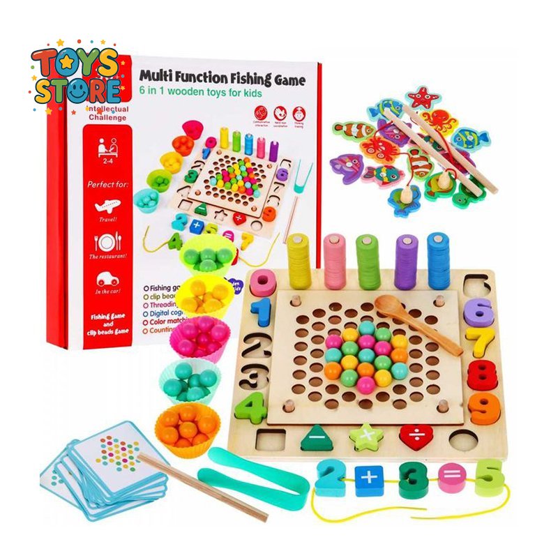 مجموعة ألعاب تعليمية خشبية 6 في 1 لعبة فرز وصيد الأسماك، تعلم الأرقام