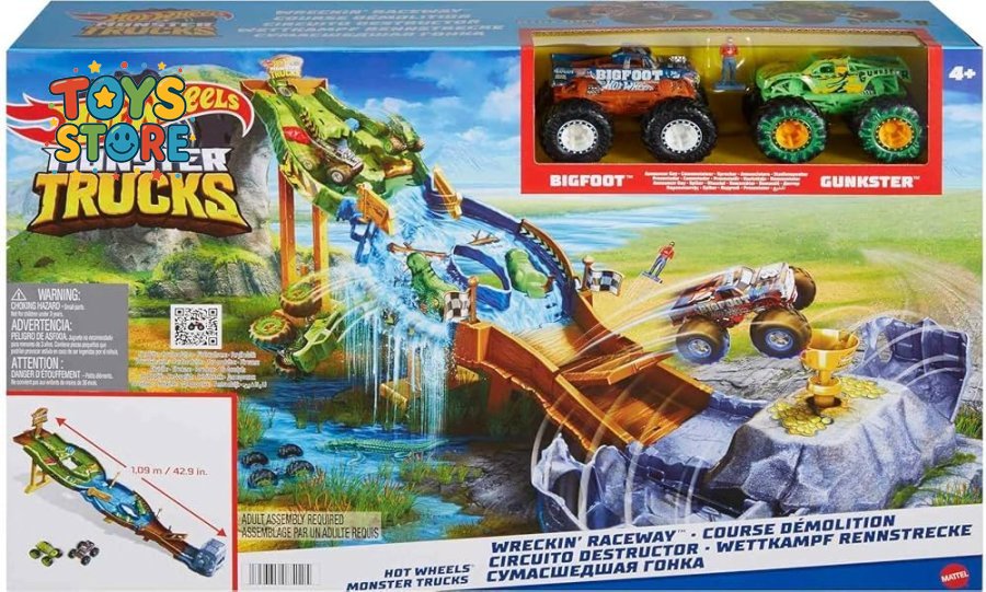 لعبة مضمار سباق شاحنات مونستر من اتش جيه جي 32 مع شاحنات للسباقات