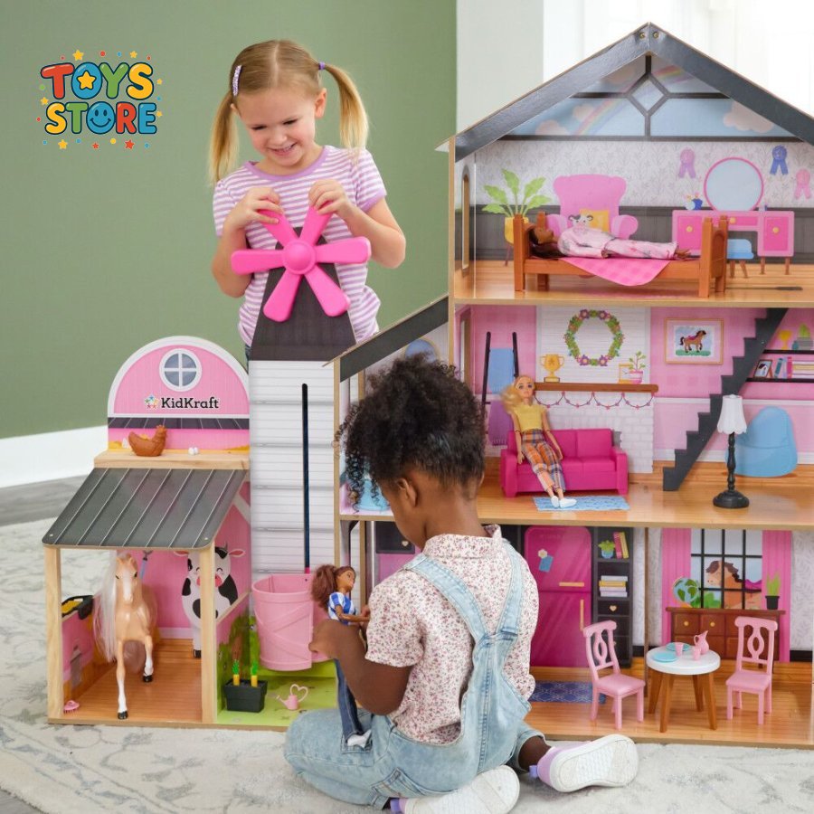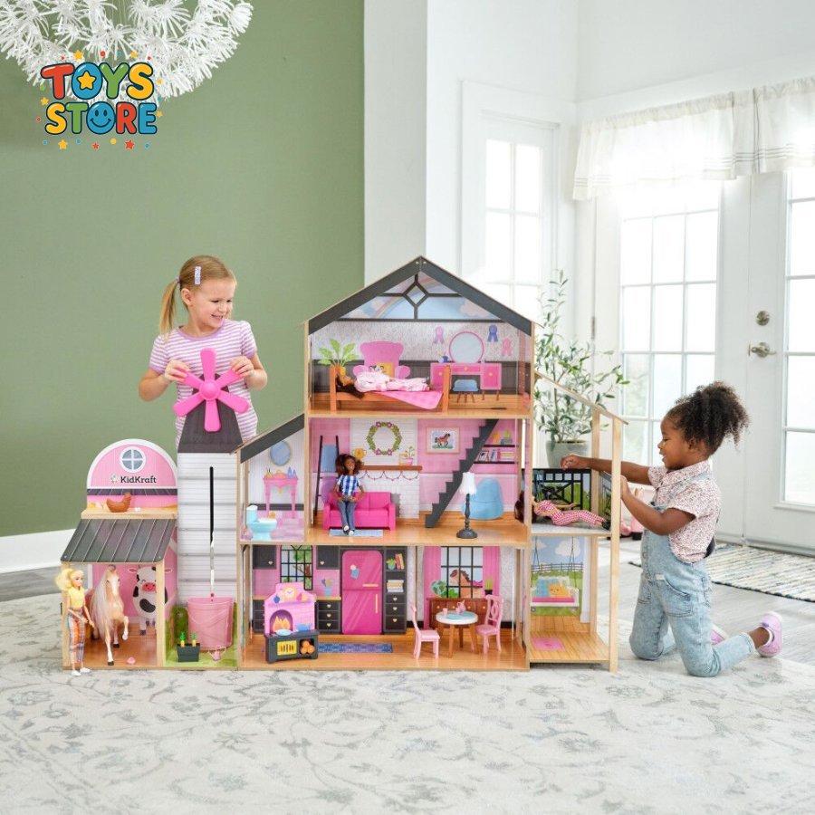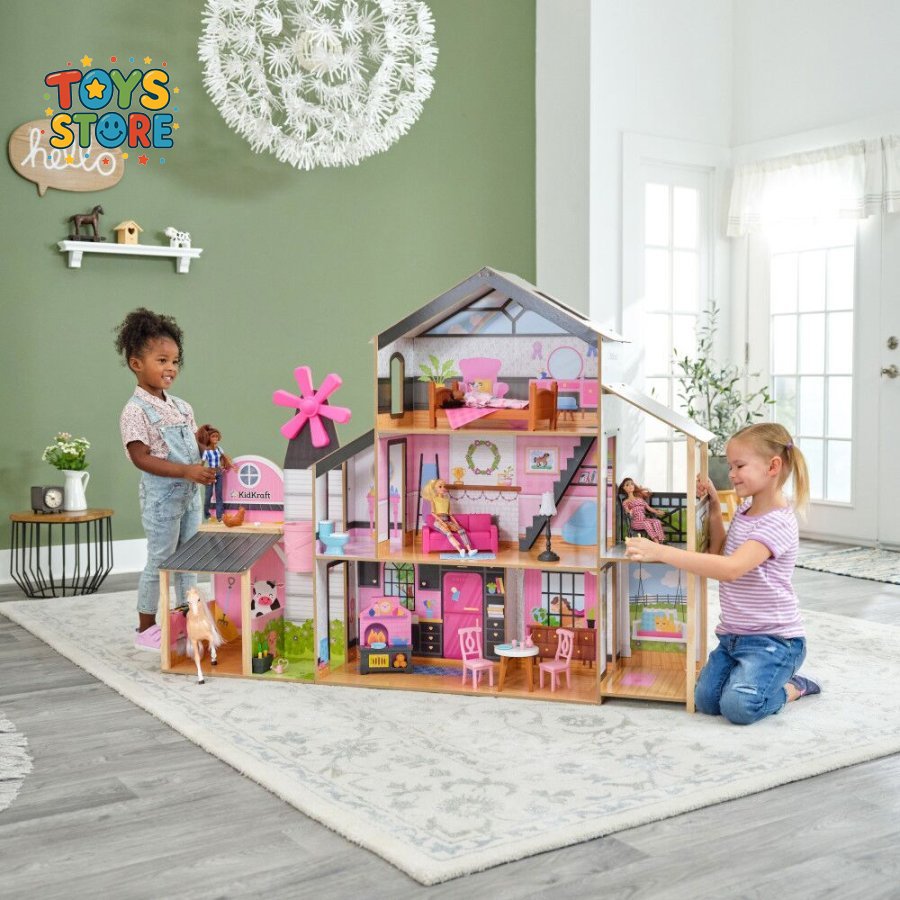 منزل خشب و حظيرة حيوانات حجم كبير 2 في 1