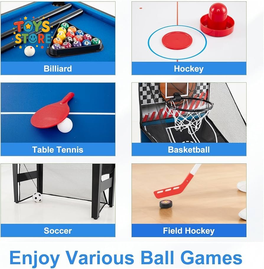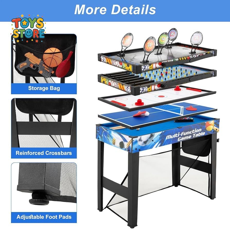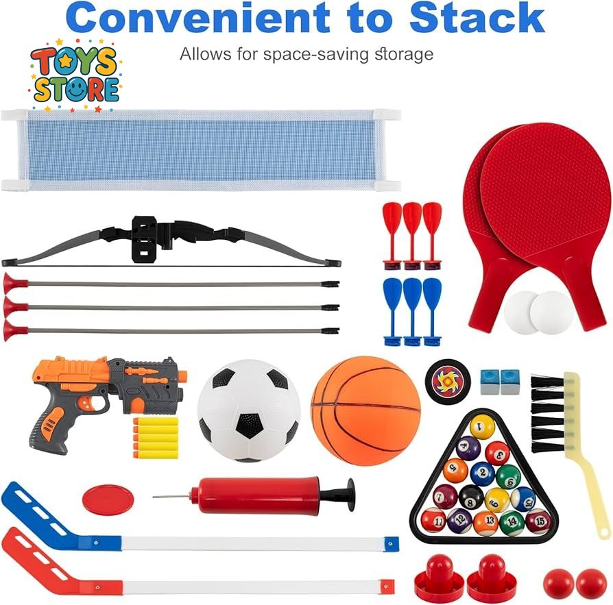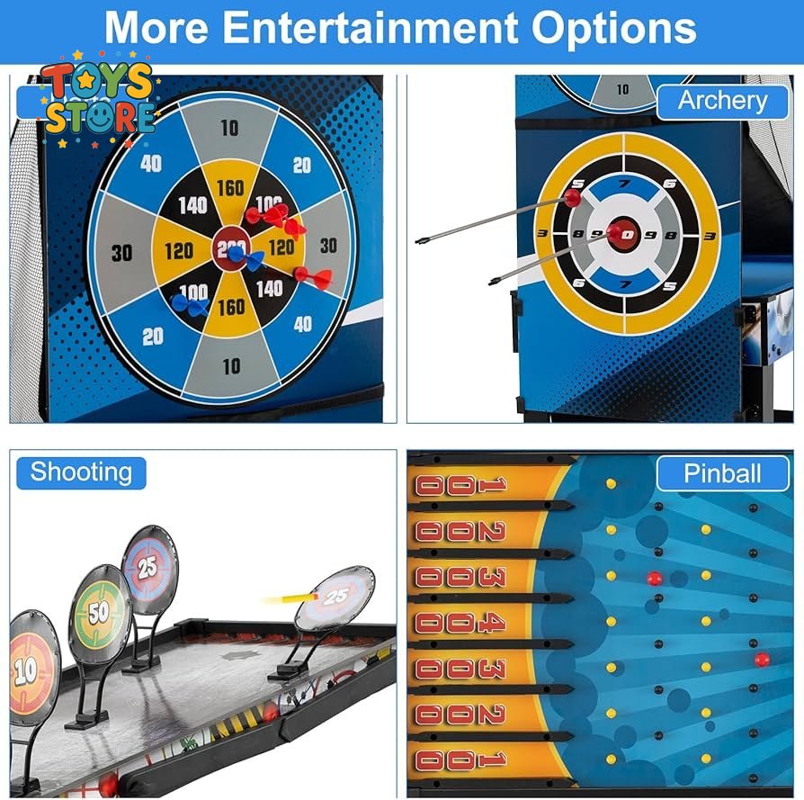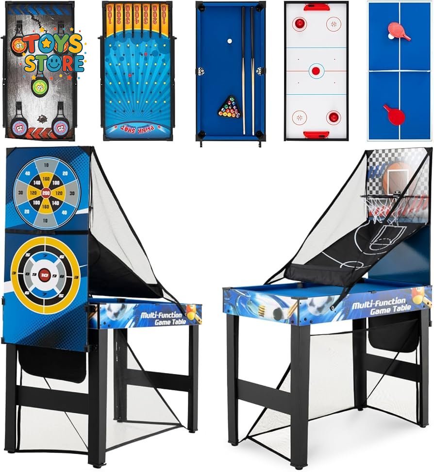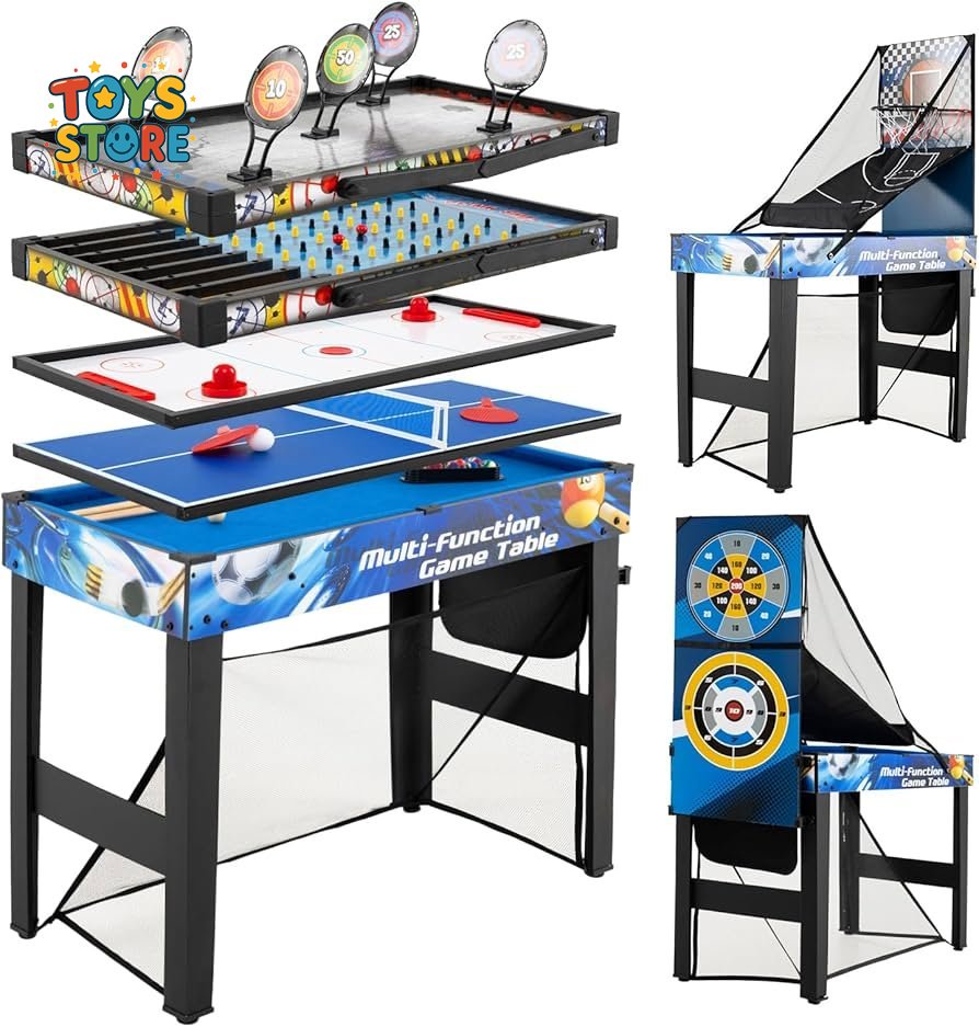 تصميم 10 في 1: توفر طاولة الألعاب هذه متعة لا تنتهي للأطفال والكبار على حد سواء. يمكنك لعب كرة القدم، وكرة السلة، وتنس الطاولة، والبلياردو، والهوكي الهوائي، وغيرها الكثير على جهاز واحد موفر للمساحة، مع الاستمتاع بألعاب إضافية ممتعة مثل الرماية، والبينبول، ولعبة رمي السهام، والرماية بالقوس.